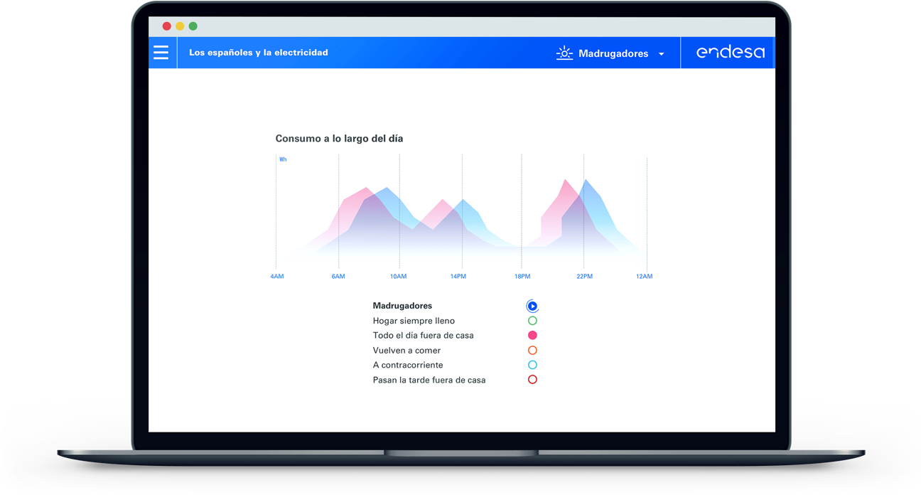 Los datos esenciales han sido las curvas de consumo en Watios hora de millones de clientes de Endesa a lo largo de distintos periodos.